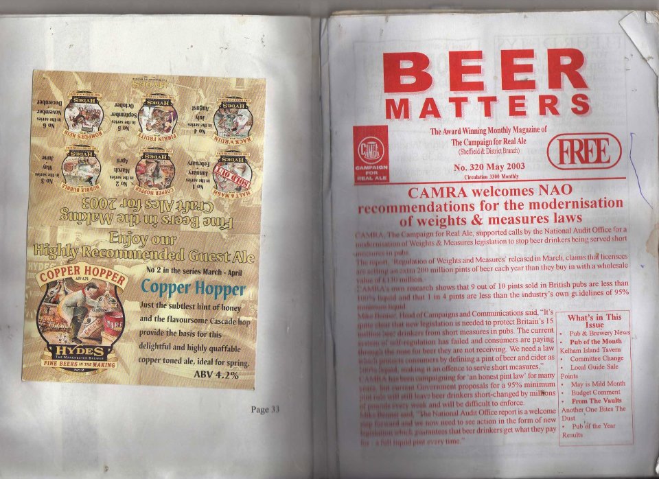 In Book 70 on page 33 (related material: Hydes Copper Hopper, Enjoy our Highly Recommended Guest Ale, No 1 in the series March-April):
