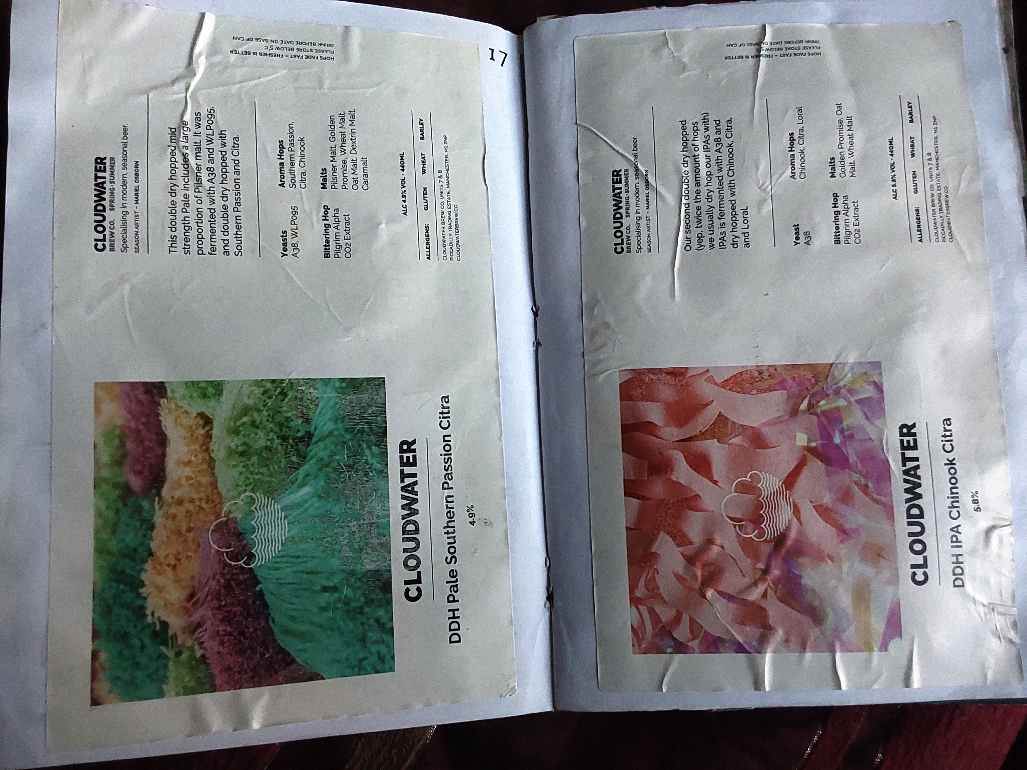 Apart from DDH Pale Southern Passion Citra, Hop Horizons lists 478 others by Cloudwater. These are:
