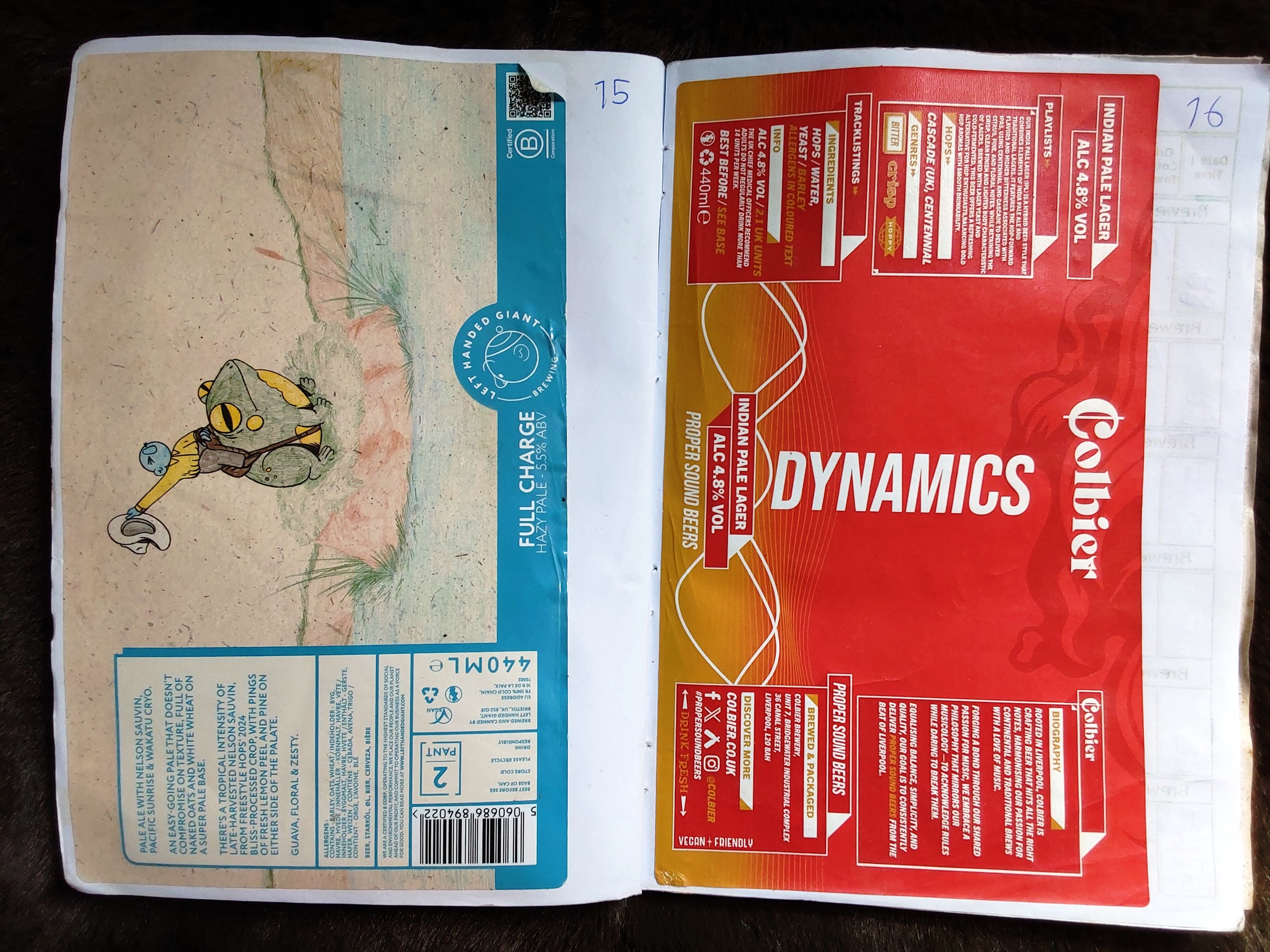 | Date and Time | Container | Pub/Place and Where | Strength ABV | Colour | Score Components | Score | Descriptive word(s) | Book No. |