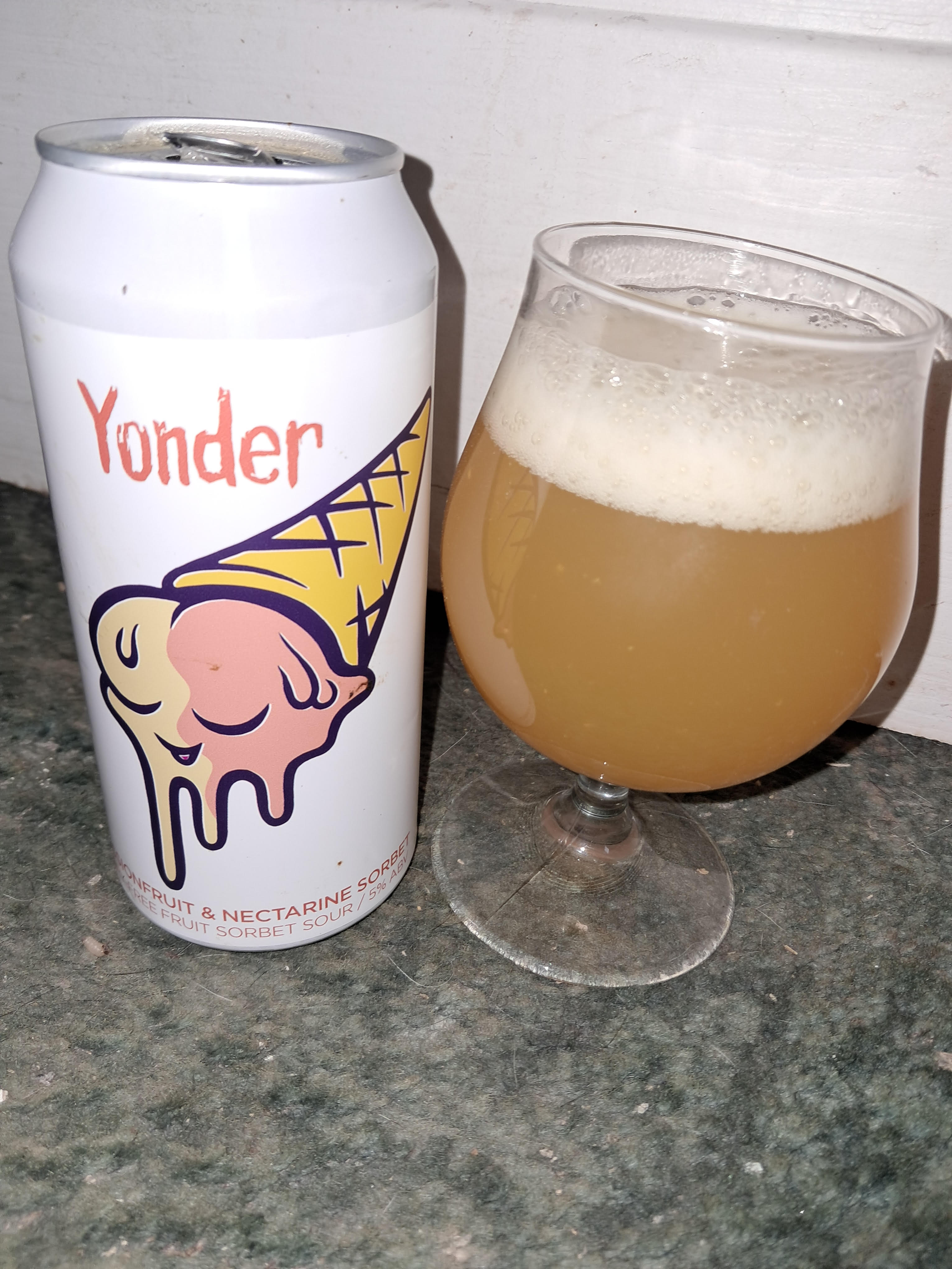 This Passionfruit and nectarine diary-free ice cream sour is/was brewed by Yonder in Binegar, Somerset, England. It's achieved an overall score of 32.44%. Based on 1 tasting, the average ABV is 5.00%. It was purchased from R&H Fine Wines in Liverpool on 11 May 2024.