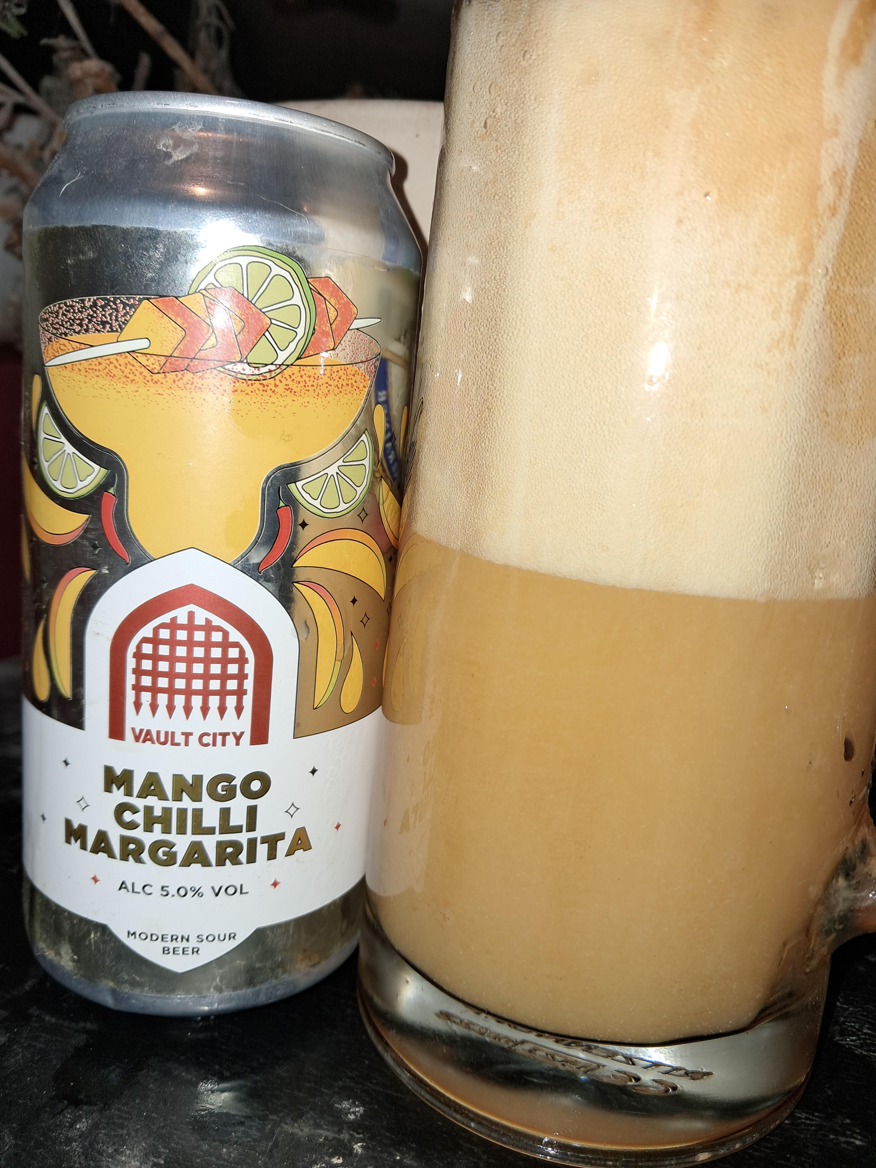 This Mango, lime juice, peach, salt and chilli flake sour is/was brewed by Vault City in Edinburgh, Lothians, Scotland. It's achieved an overall score of 60.03%. Based on 1 tasting, the average ABV is 5.00%. It was purchased from Black Cat in Liverpool on 1 Nov 2025.