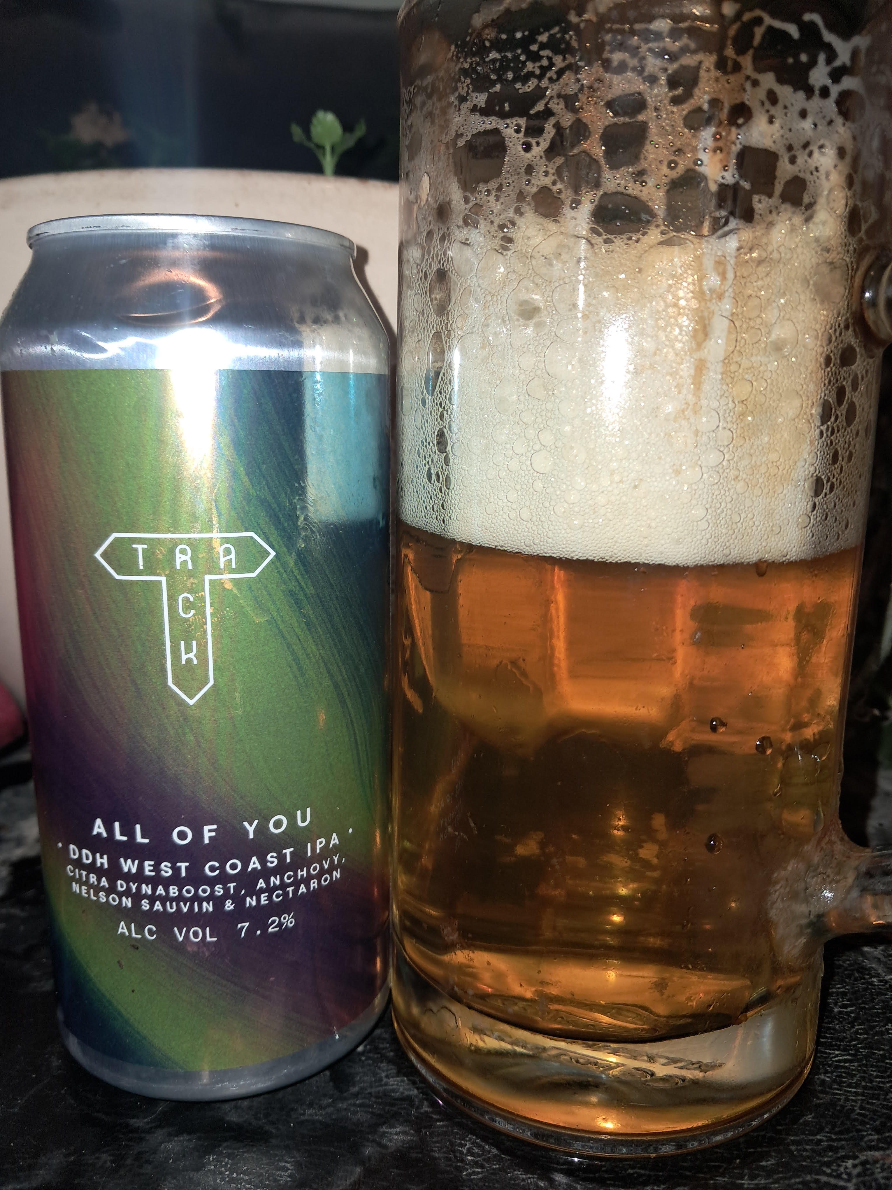This Citra Dynaboost, Anchovy, Nelson Sauvin and Nectaron West Coast DDH IPA is/was brewed by Track in Manchester, Greater Manchester, England. It's achieved an overall score of 62.25%. Based on 1 tasting, the average ABV is 7.20%. It was purchased from R&H Fine Wines in Liverpool on 20 Dec 2025.
