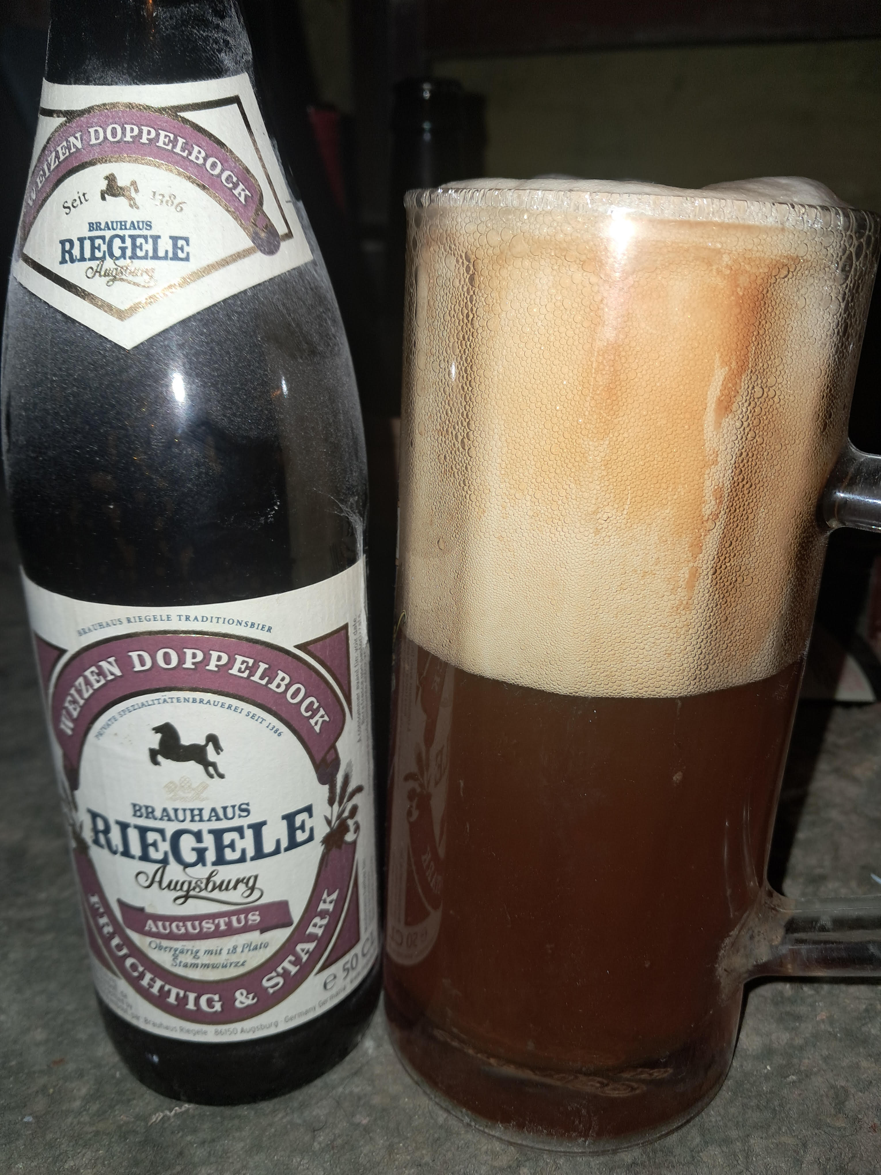 This Weizen doppelbock is/was brewed by Brauhaus Riegele in Augsberg, Bavaria, Germany. It's achieved an overall score of 76.32%. Based on 1 tasting, the average ABV is 8.00%.