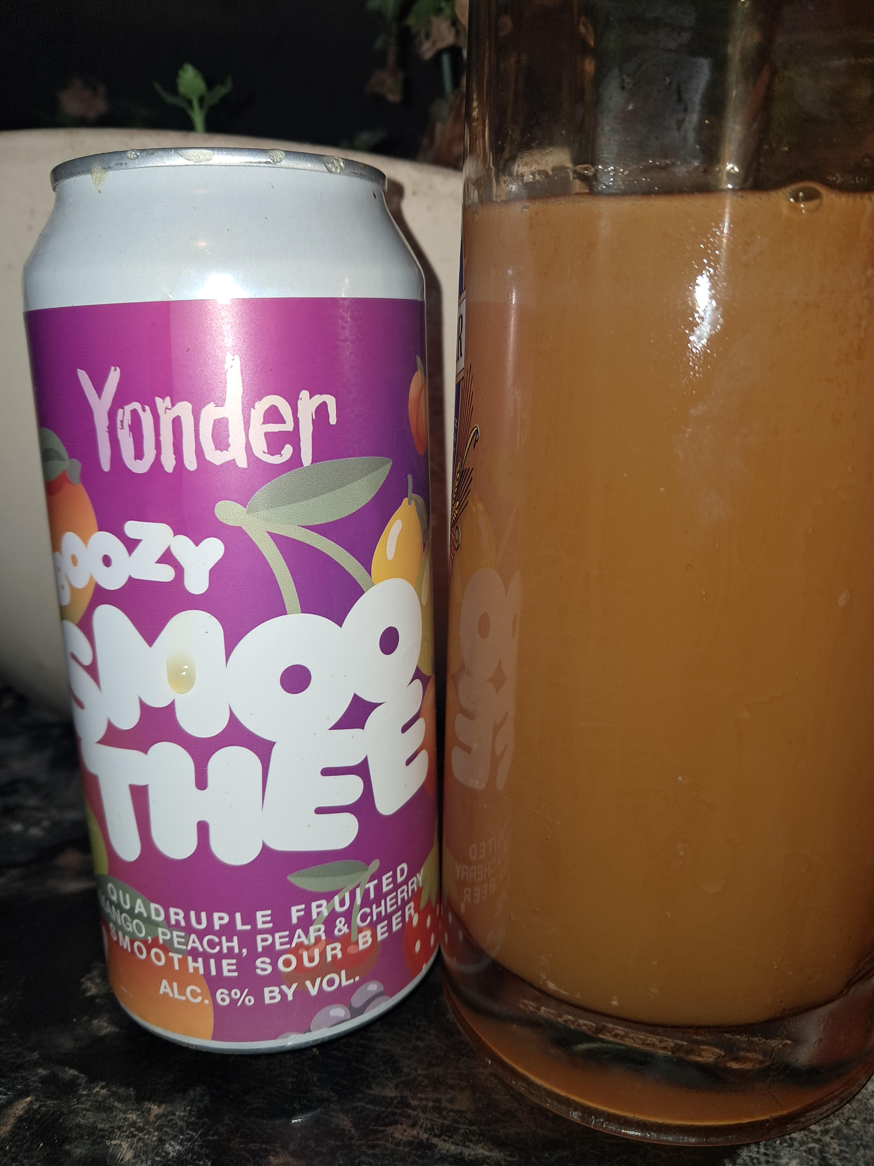 This Quadruple fruited mango, peach, pear and cherry smoothie sour is/was brewed by Yonder in Binegar, Somerset, England. It's achieved an overall score of 37.88%. Based on 1 tasting, the average ABV is 6.00%. It was purchased from R&H Fine Wines in Liverpool on 3 Aug 2024.
