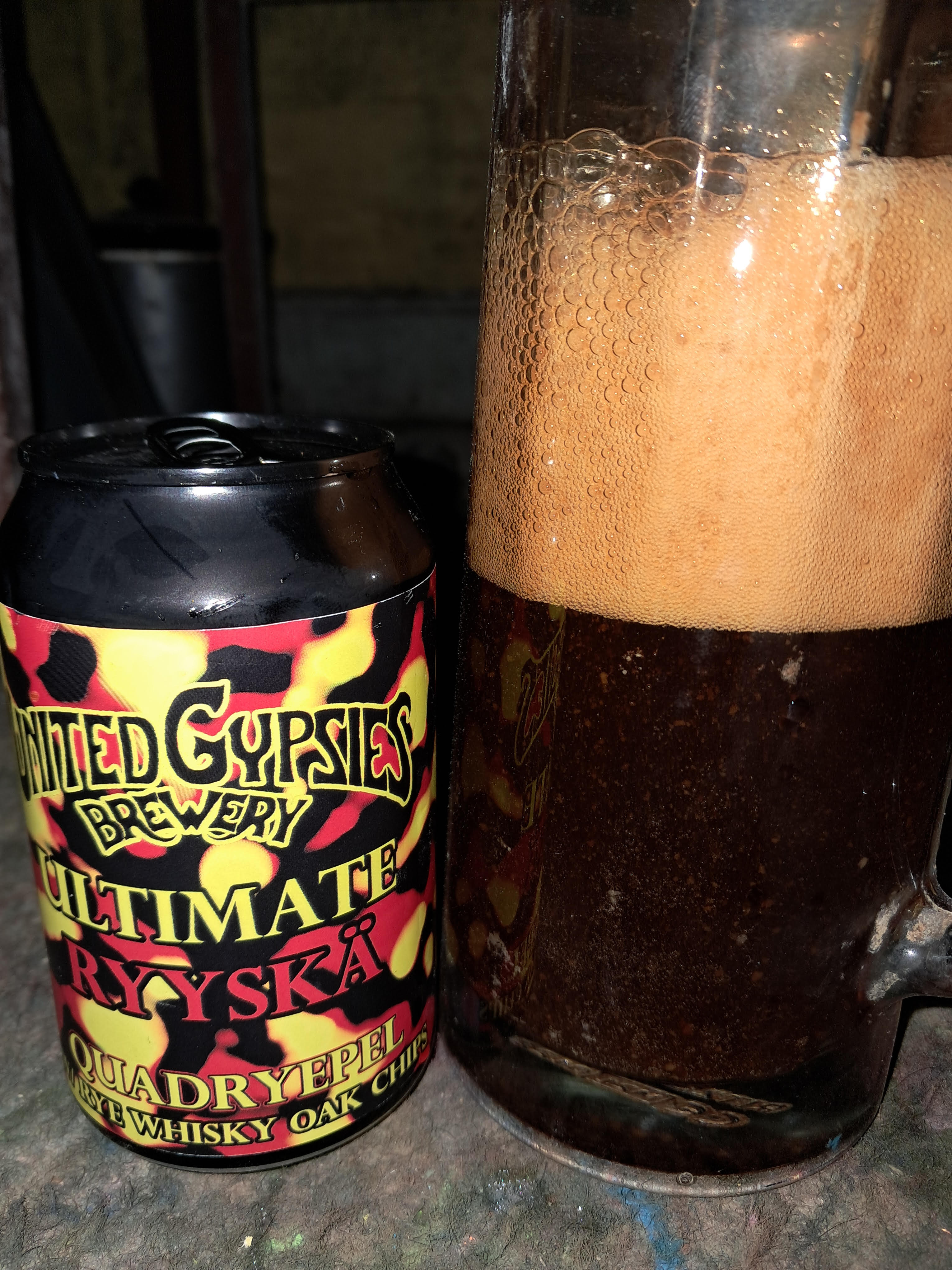 This Rye whisky oak chip quadrupel is/was brewed by United Gypsies (UG) in Lohja, Uusimaa, Finland. It's achieved an overall score of 84.65%. Based on 1 tasting, the average ABV is 11.00%.