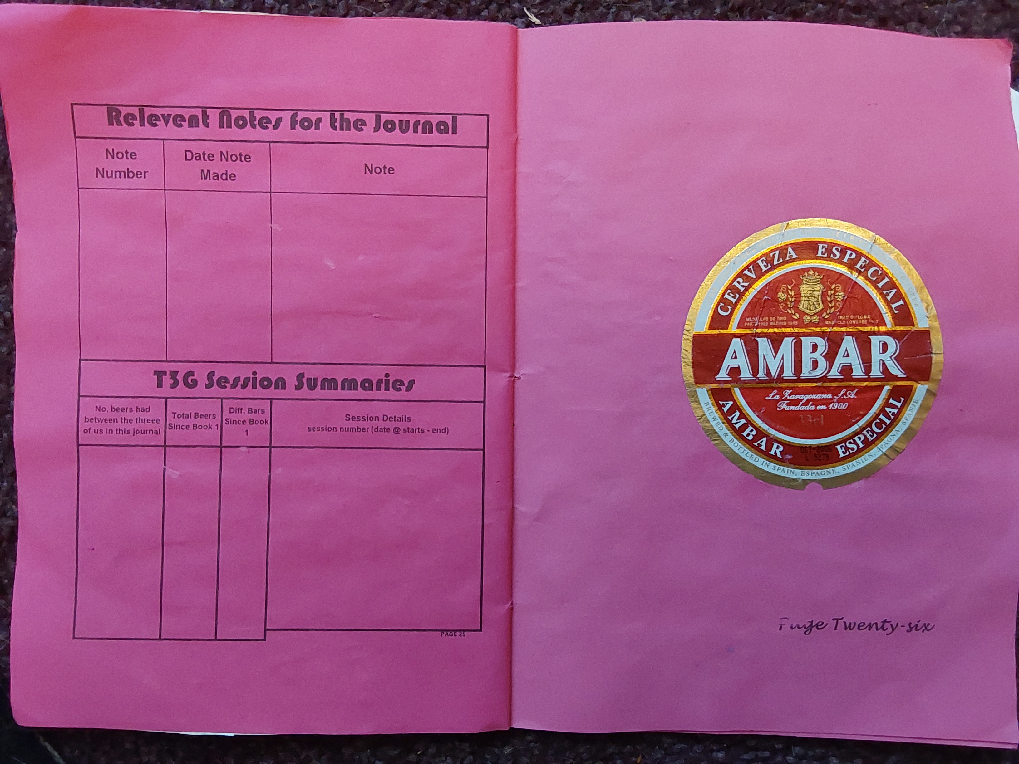 | Date and Time | Container | Pub/Place and Where | Strength ABV | Colour | Score Components | Score | Descriptive word(s) | Book No. |