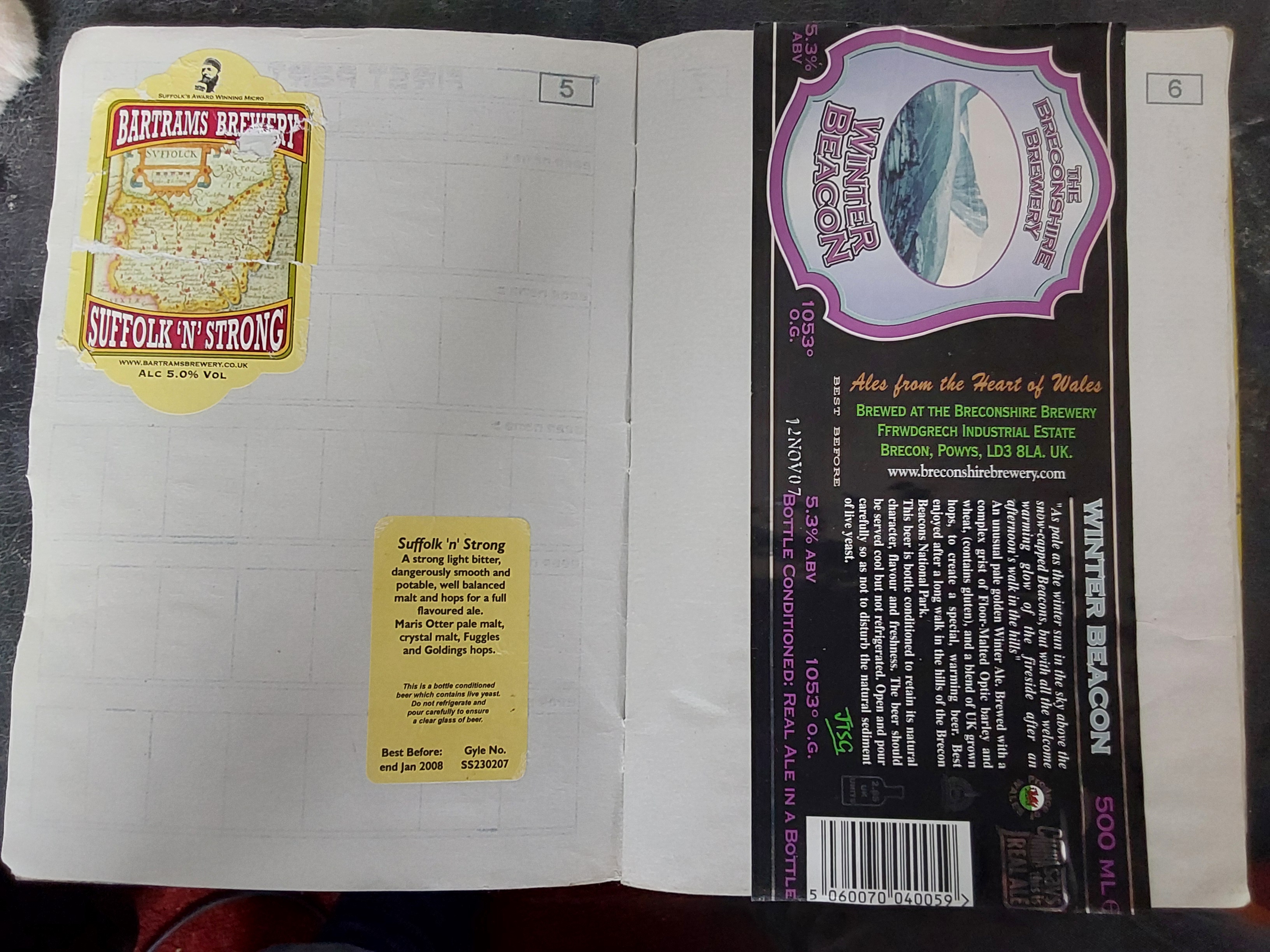 | Date and Time | Container | Pub/Place and Where | Strength ABV | Colour | Score Components | Score | Descriptive word(s) | Book No. |