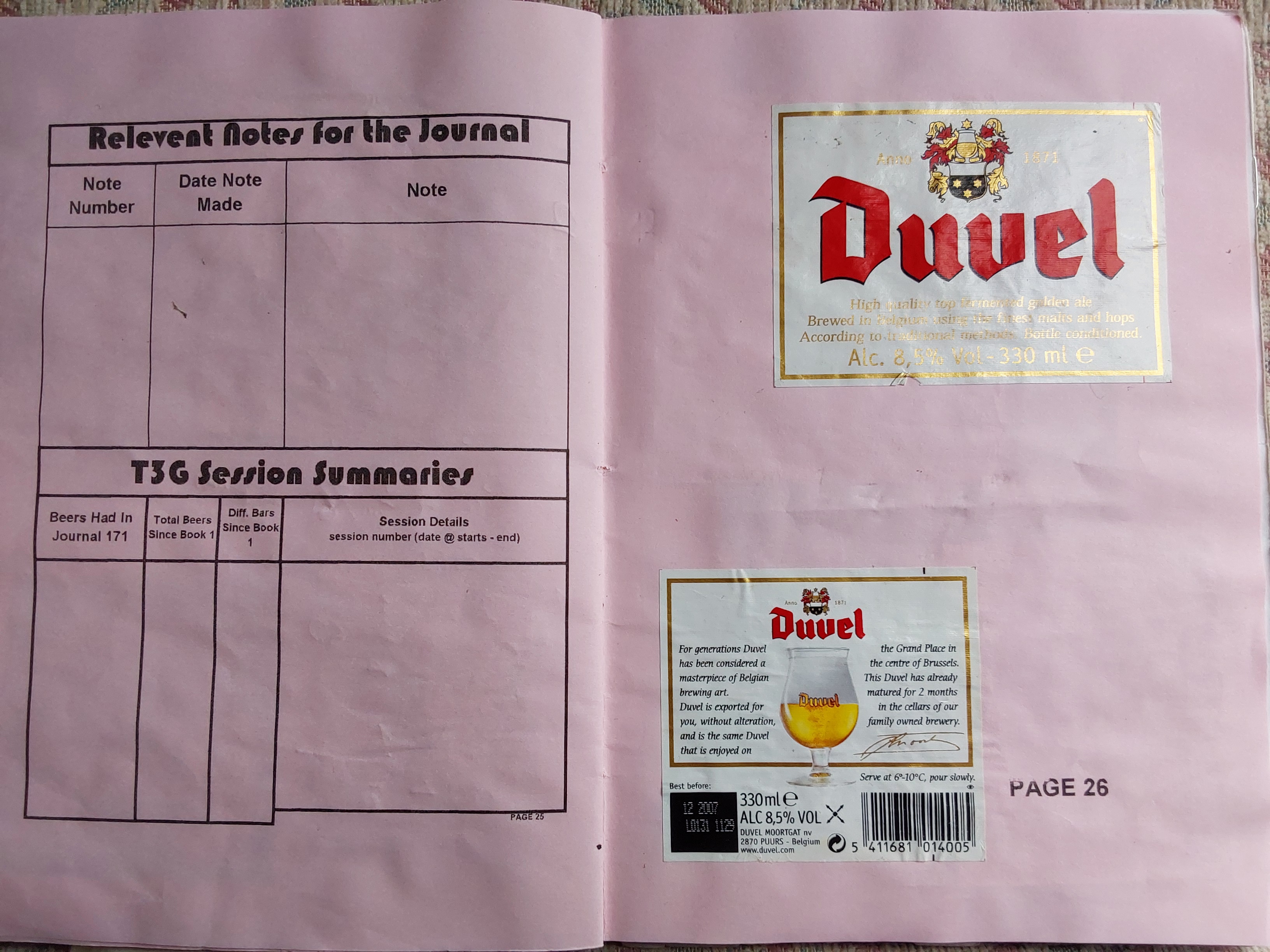 | Date and Time | Container | Pub/Place and Where | Strength ABV | Colour | Score Components | Score | Descriptive word(s) | Book No. |