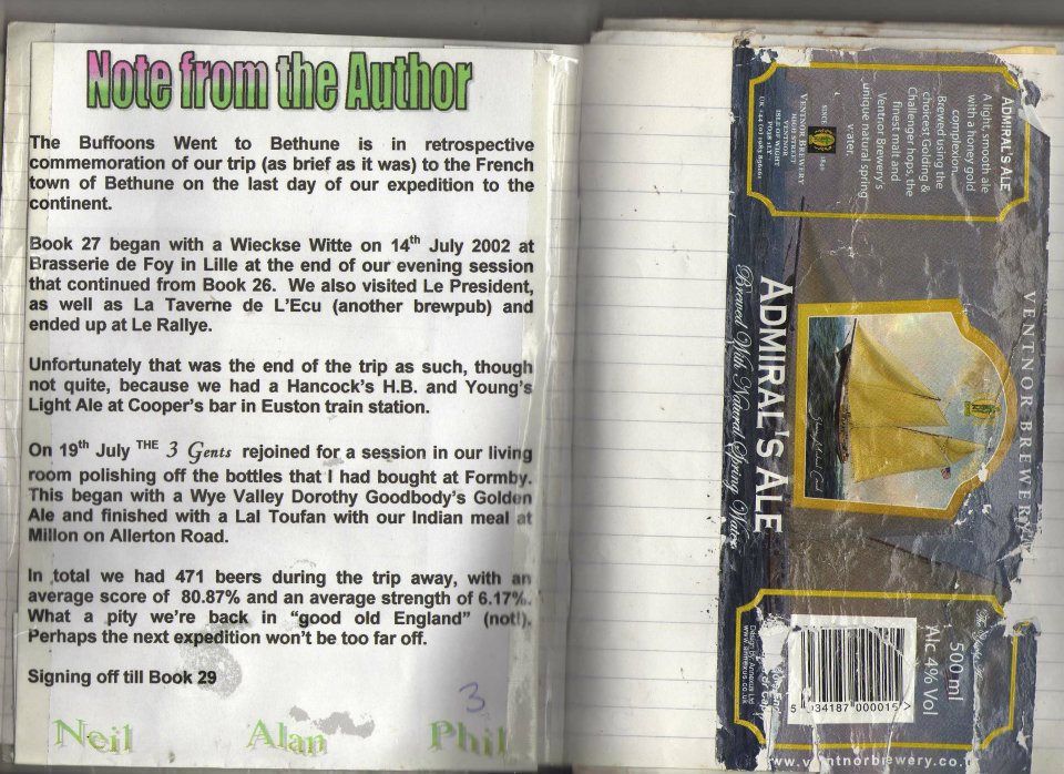 | Date and Time | Container | Pub/Place and Where | Strength ABV | Colour | Score Components | Score | Descriptive word(s) | Book No. |